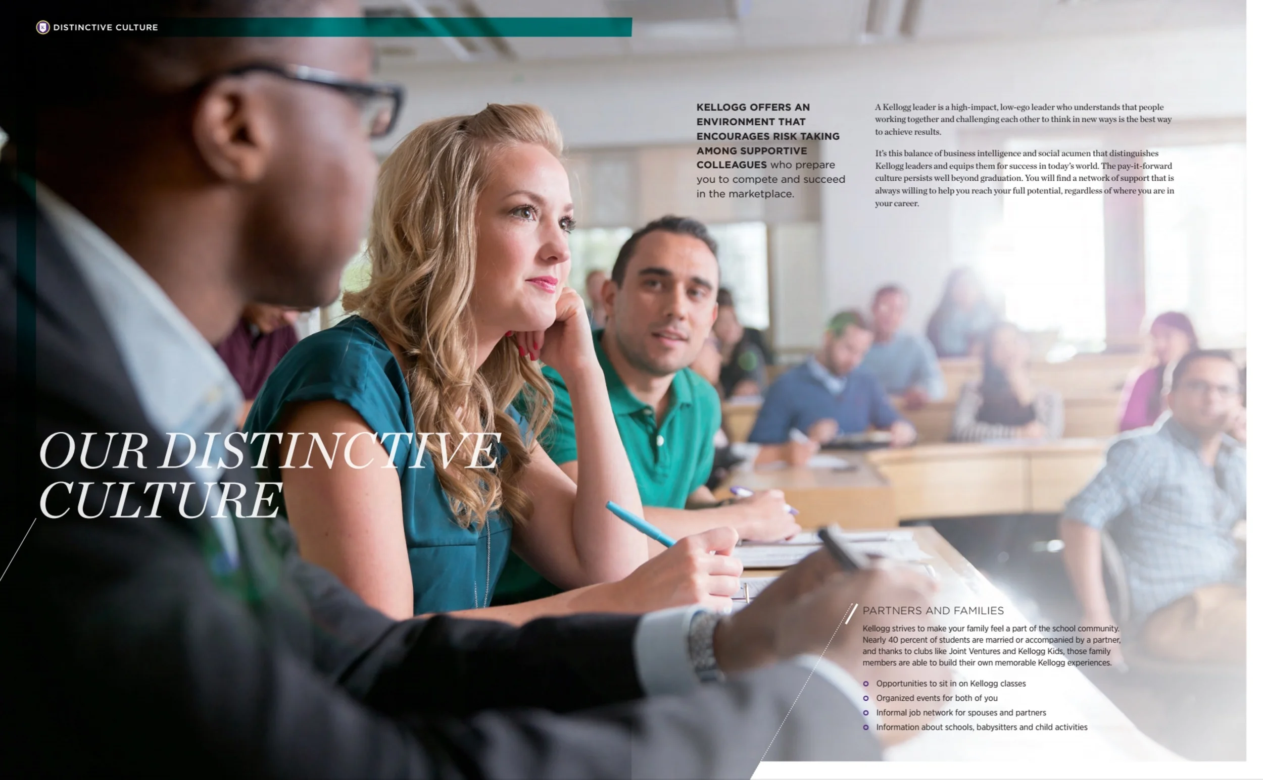 We had the opportunity to work with Northwestern University's Kellogg School of Management to create new lifestyle imagery for their full-time MBA program view book.